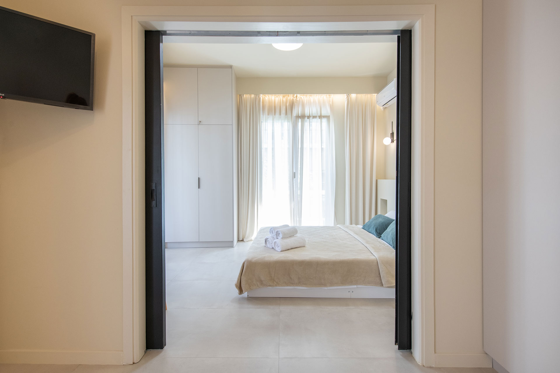 This apartment is comprised of 1 living room, 1 separate bedroom and 1 bathroom with a shower and free toiletries. Meals can be prepared in the kitchenette, which is fitted with a stovetop, a refrigerator, kitchenware and an oven. The air-conditioned apartment offers a flat-screen TV, a washing machine, a tea and coffee maker, a wardrobe as well as city views. The unit offers 2 beds.